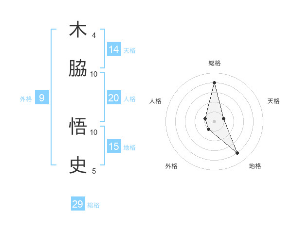 木脇 悟史さんの総格は29画の4点!