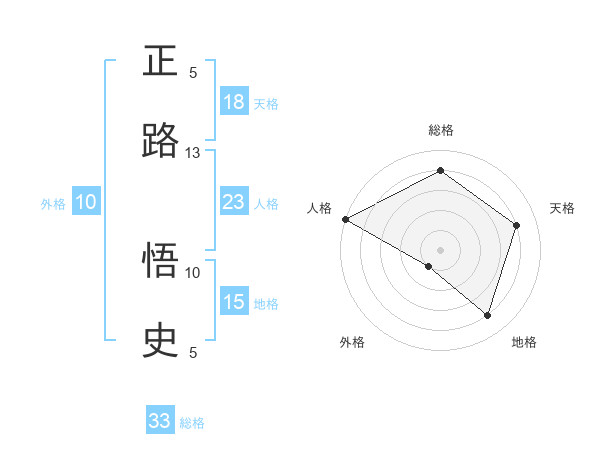 正路 悟史さんの人格は23画の5点!