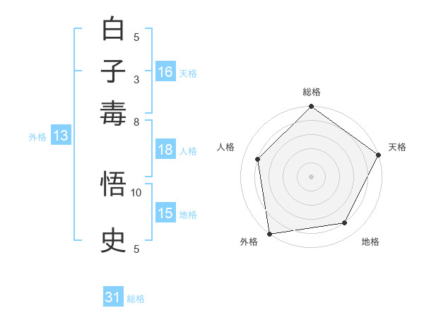 白子毒 悟史さんの総格は31画の5点!