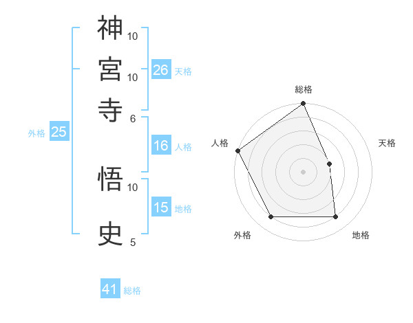 神宮寺 悟史さんの総格は41画の5点!
