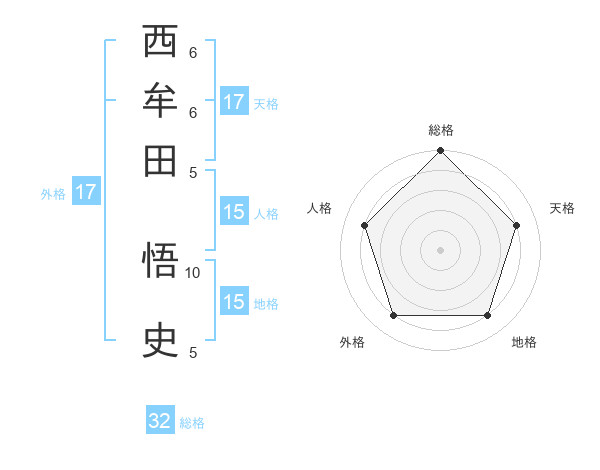 西牟田 悟史さんを姓名の画数から五運を鑑定