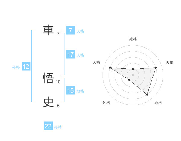 車 悟史さんの総格は22画の1点!