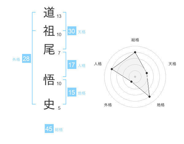 道祖尾 悟史さんの総格は45画の4点!