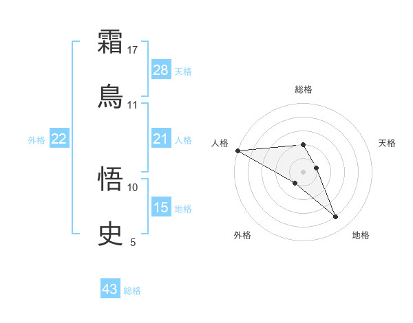 霜鳥 悟史さんを姓名の画数から五運を鑑定