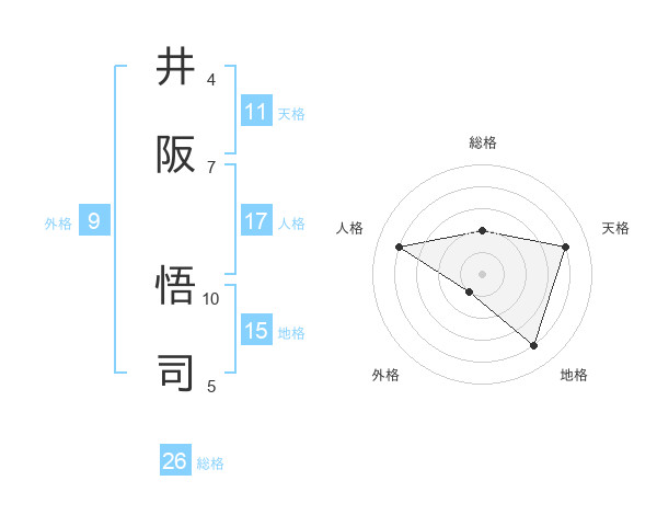 井阪 悟司さんの総格は26画の2点!
