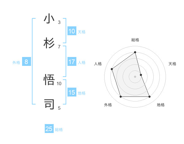 小杉 悟司さんを姓名の画数から五運を鑑定