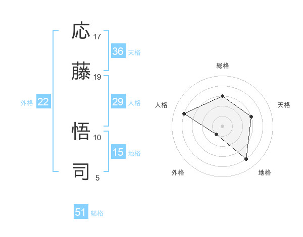 応藤 悟司さんの総格は51画の3点!