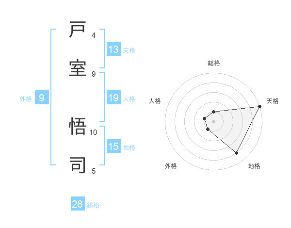 戸室 悟司さんの総格は28画の1点!