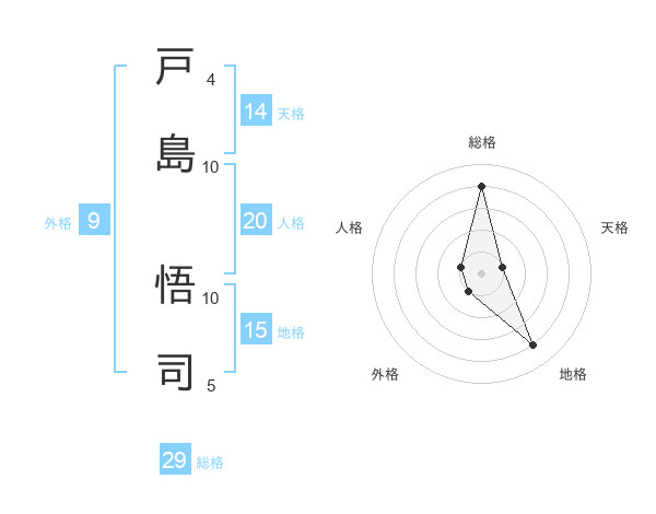 戸島 悟司さんの総格は29画の4点!