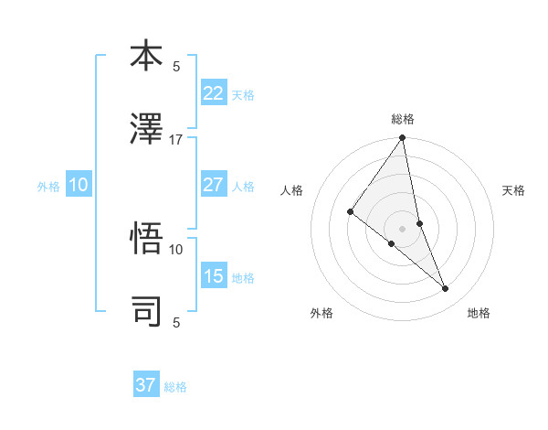 本澤 悟司さんを姓名の画数から五運を鑑定