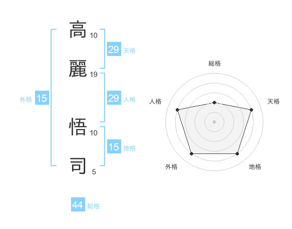 高麗 悟司さんの天格は29画の4点!