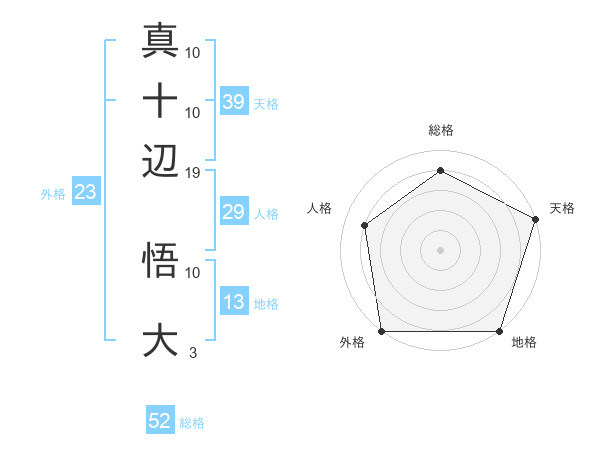 真十辺 悟大さんの総格は52画の4点!