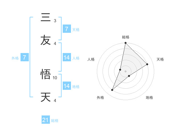 三友 悟天さんの総格は21画の5点!