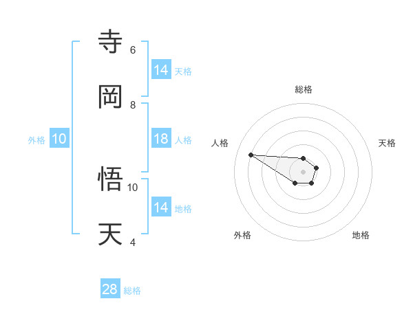 寺岡 悟天さんを姓名の画数から五運を鑑定