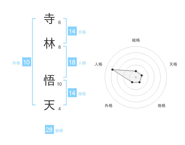 寺林 悟天さんを姓名の画数から五運を鑑定