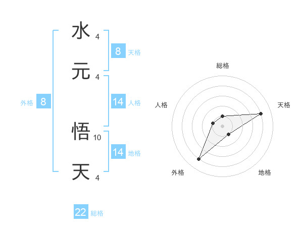 水元 悟天さんの天格は8画の4点!