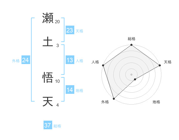 瀬土 悟天さんを姓名の画数から五運を鑑定