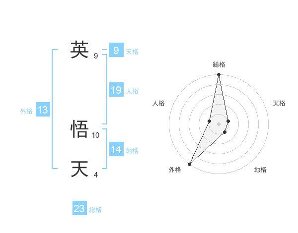 英 悟天さんの外格は13画の5点!