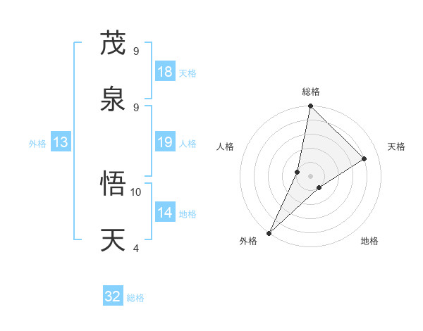 茂泉 悟天さんの総格は32画の5点!