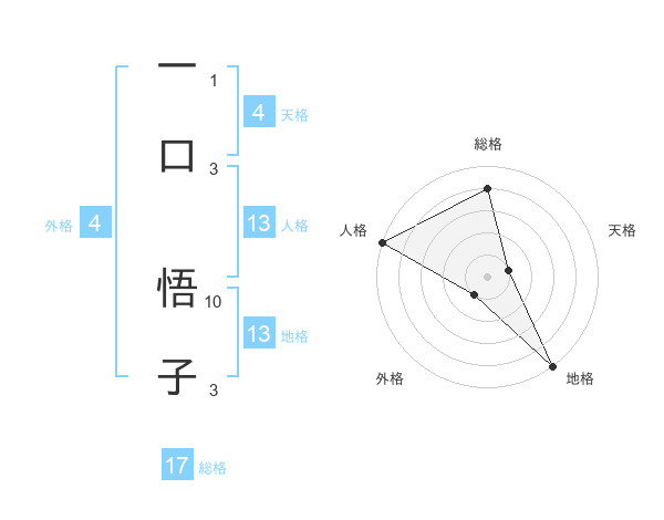 一口 悟子さんの総格は17画の4点!