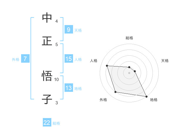中正 悟子さんの総格は22画の1点!