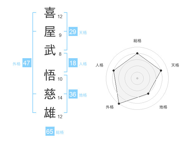 喜屋武 悟慈雄さんの外格は47画の5点!