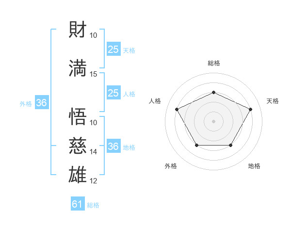財満 悟慈雄さんを姓名の画数から五運を鑑定