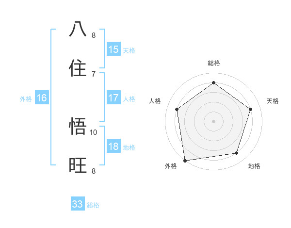 八住 悟旺さんの総格は33画の4点!
