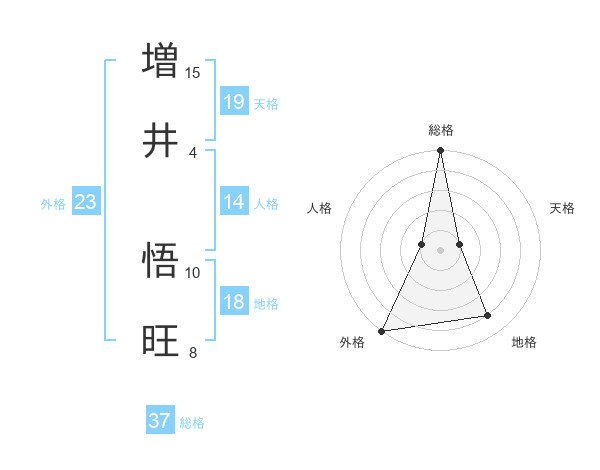 増井 悟旺さんの総格は37画の5点!