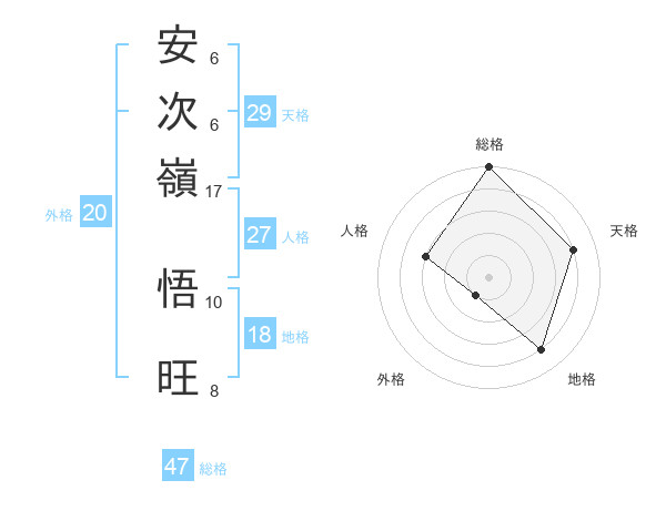 安次嶺 悟旺さんを姓名の画数から五運を鑑定