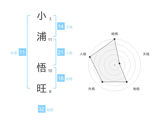 小浦 悟旺さんの総格は32画の5点!
