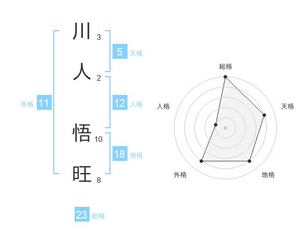 川人 悟旺さんを姓名の画数から五運を鑑定