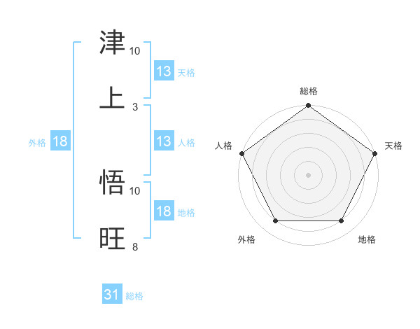 津上 悟旺さんを姓名の画数から五運を鑑定