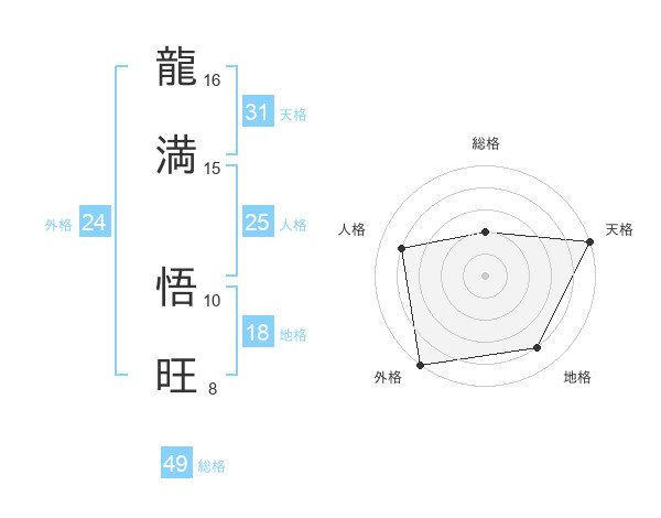 龍満 悟旺さんを姓名の画数から五運を鑑定