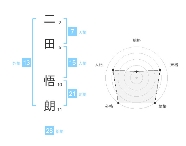 二田 悟朗さんを姓名の画数から五運を鑑定