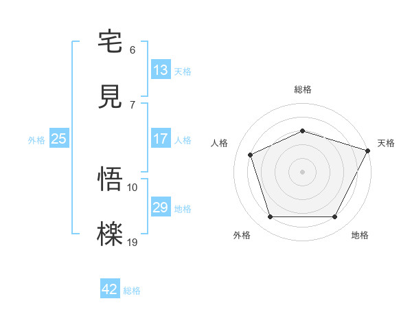 宅見 悟檪さんを姓名の画数から五運を鑑定
