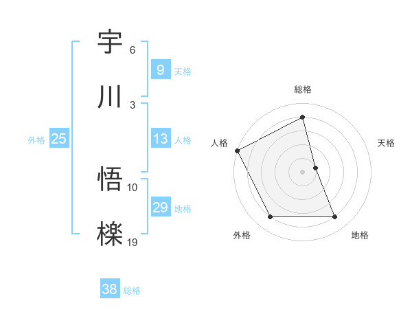 宇川 悟檪さんの総格は38画の4点!