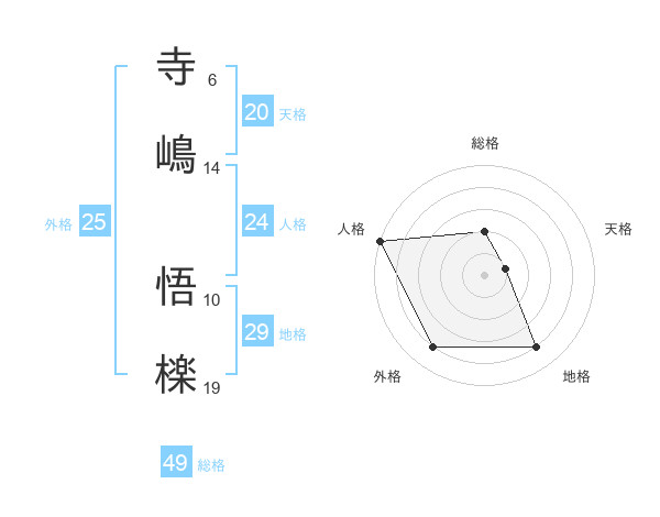 寺嶋 悟檪さんの総格は49画の2点!