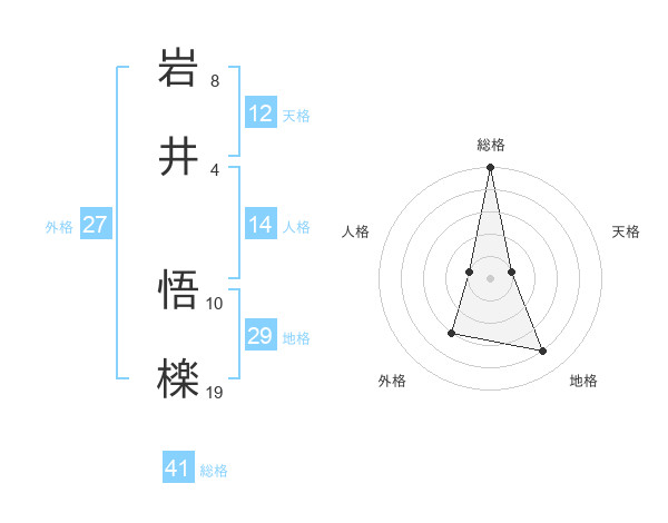 岩井 悟檪さんの総格は41画の5点!