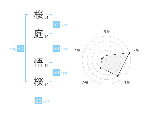 桜庭 悟檪さんの総格は60画の1点!