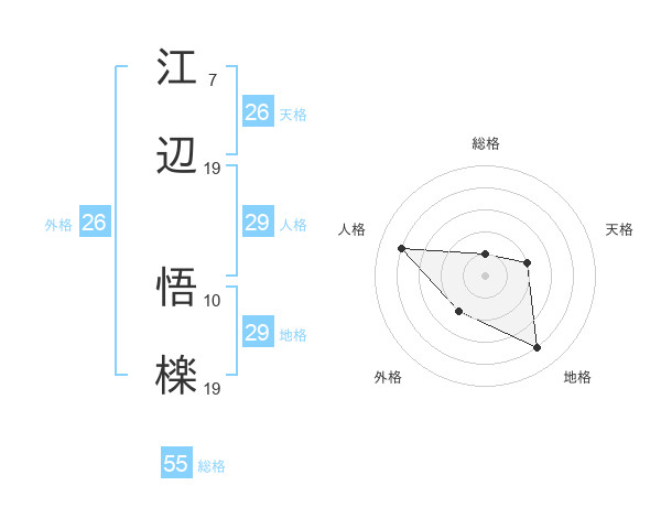江辺 悟檪さんを姓名の画数から五運を鑑定