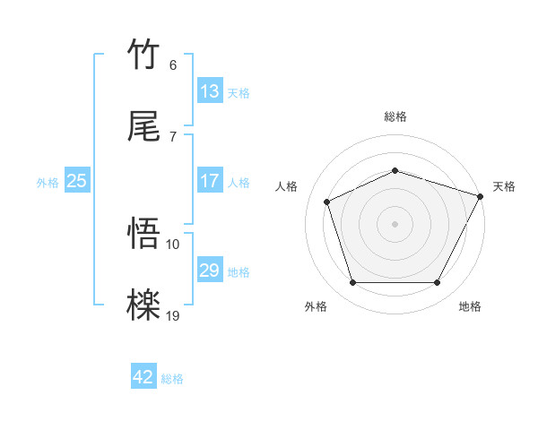 竹尾 悟檪さんの総格は42画の3点!