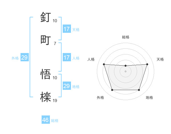 釘町 悟檪さんを姓名の画数から五運を鑑定