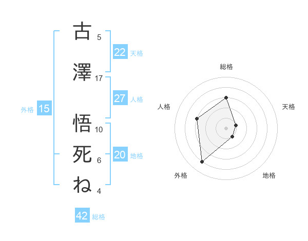 古澤 悟死ねさんを姓名の画数から五運を鑑定