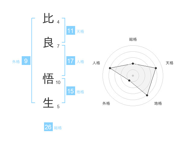 比良 悟生さんの総格は26画の2点!
