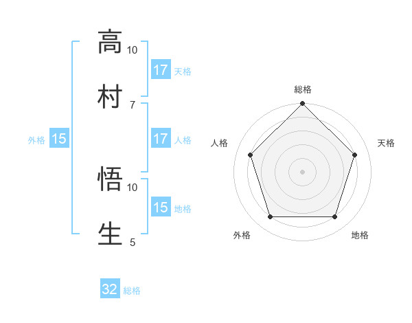 高村 悟生さんの天格は17画の4点!