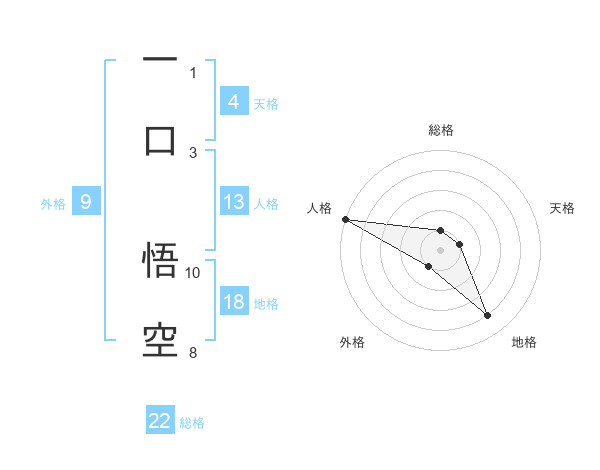 一口 悟空さんの総格は22画の1点!
