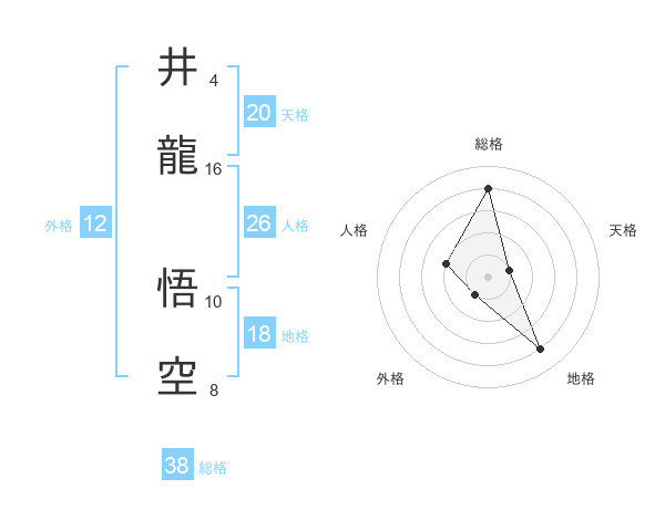 井龍 悟空さんの総格は38画の4点!