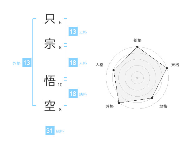 只宗 悟空さんを姓名の画数から五運を鑑定