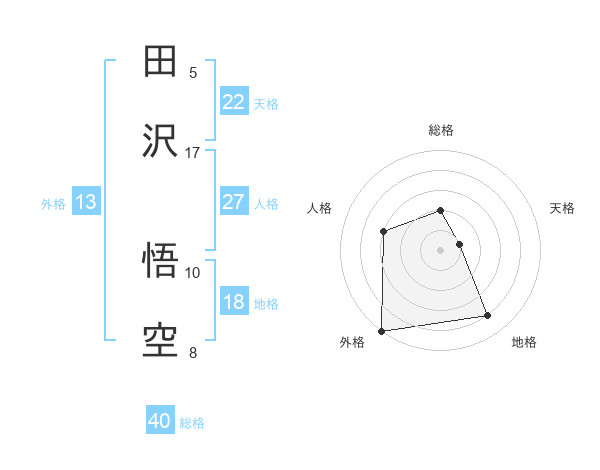 田沢 悟空さんを姓名の画数から五運を鑑定